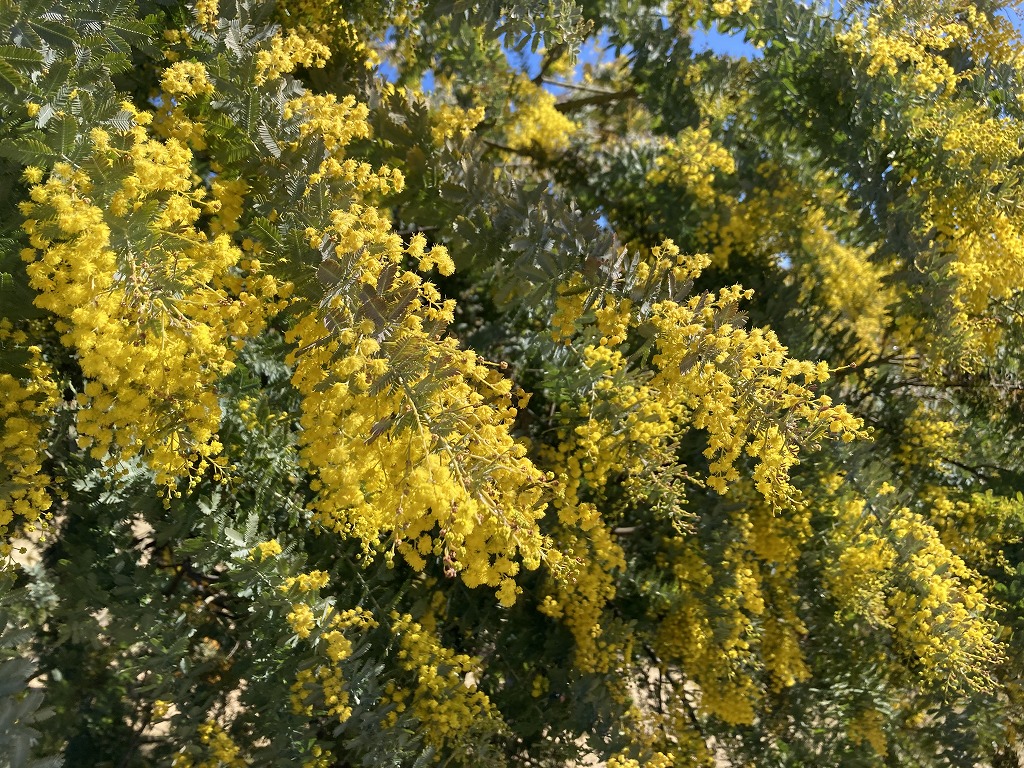 ギンヨウアカシアやフサアカシアなど、黄色い房状の花を咲かせるアカシア属の樹木の総称です。