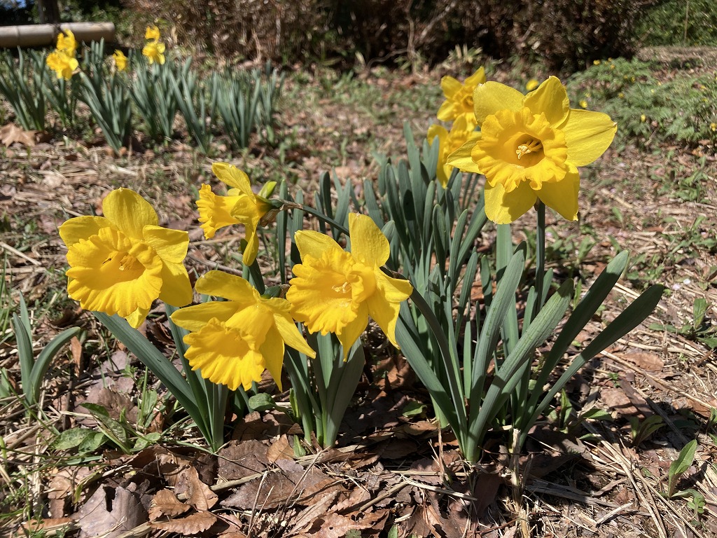 地中海が原産の水仙。ニホンスイセンと比べて花が大きく、全体が黄色く咲きます。