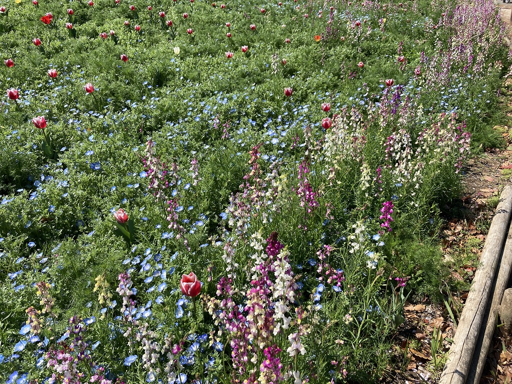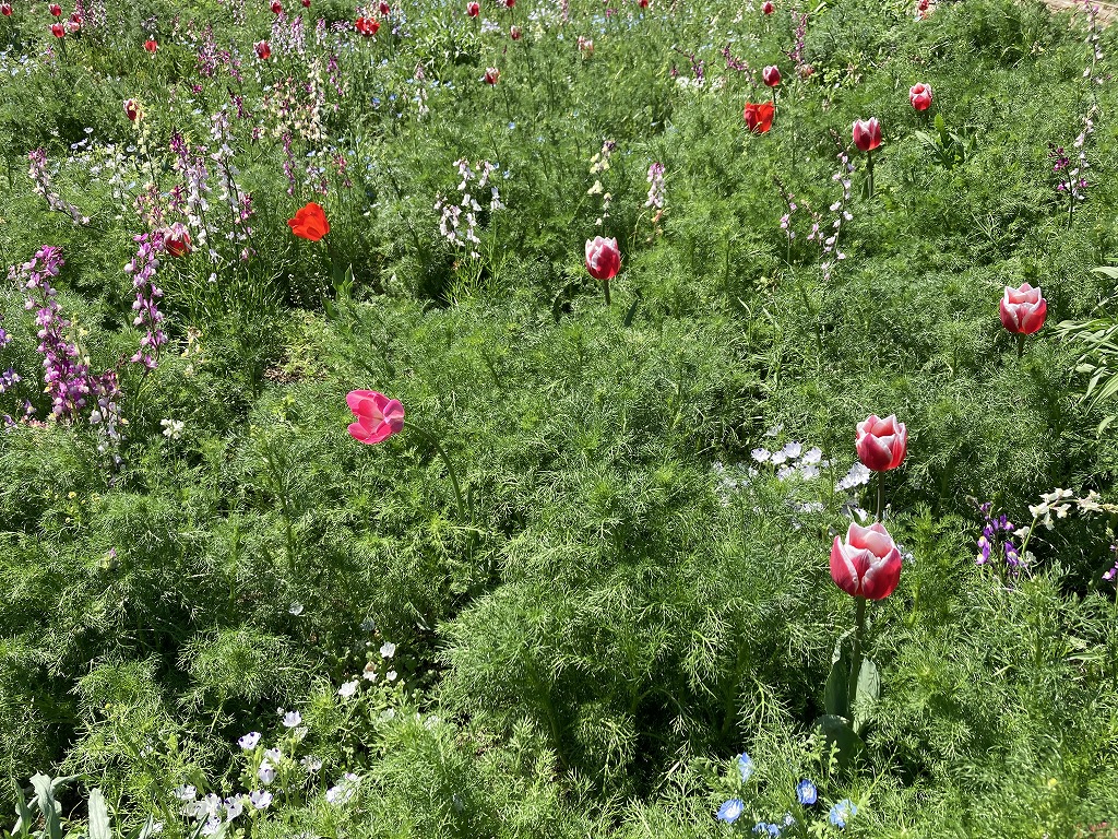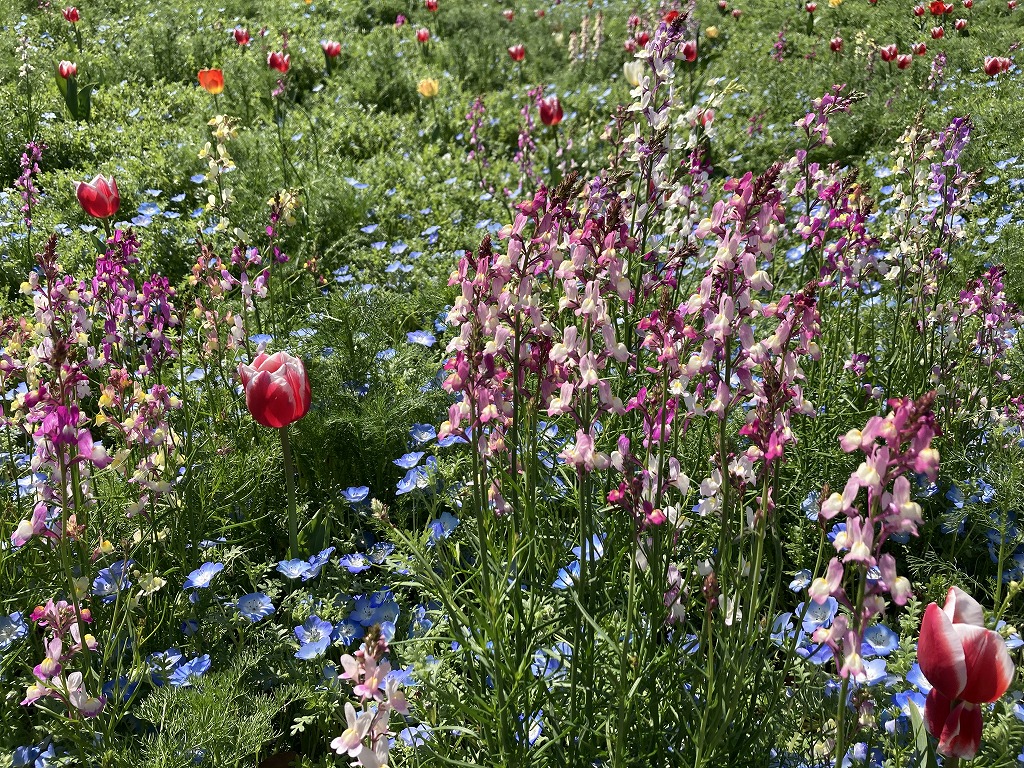 ネモフィラやリナリア、ポピーなど20品種が植わっています。どこを切り取ってもブーケのように見えるので「ブーケガーデン」です。