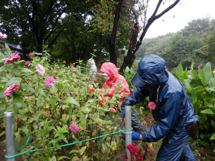 ヒャクニチソウの花柄摘みをしました。