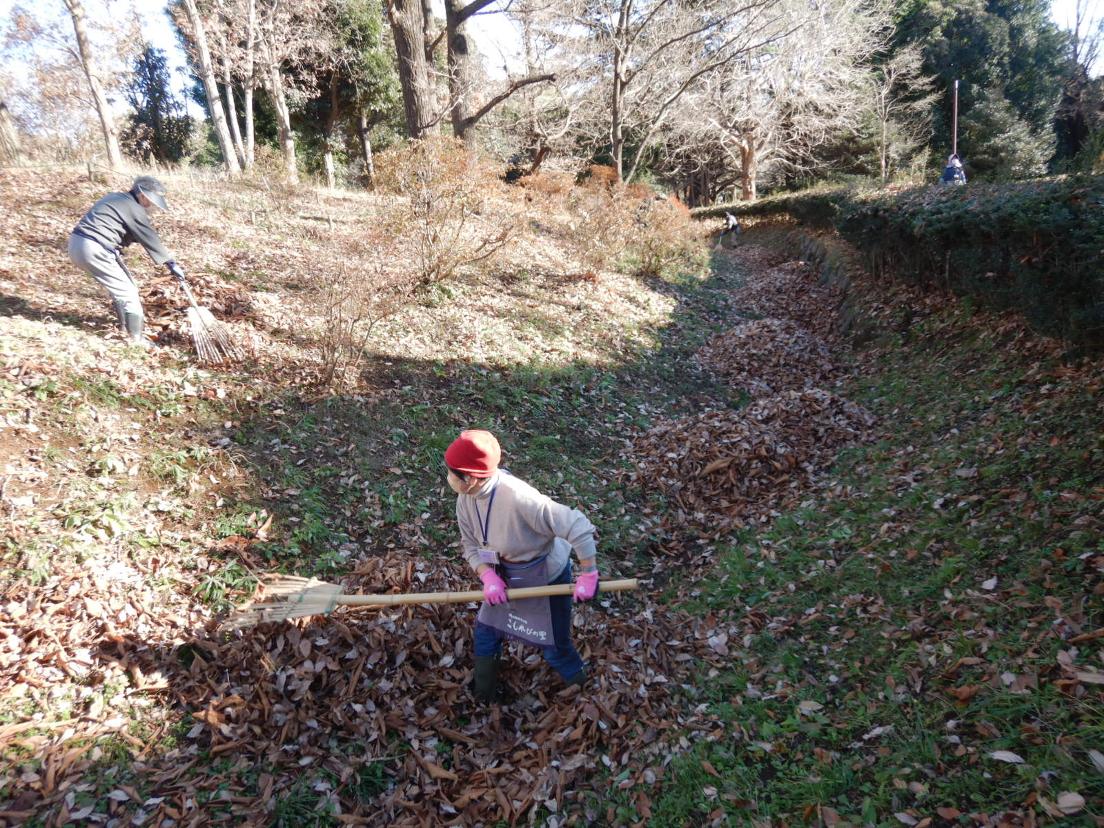 公園内の落葉を集め、堆肥置場に何度も運びました。