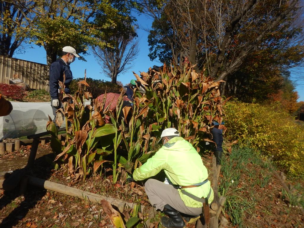 霜が降りたので靴に泥がつかないように敷き藁作りをしました。