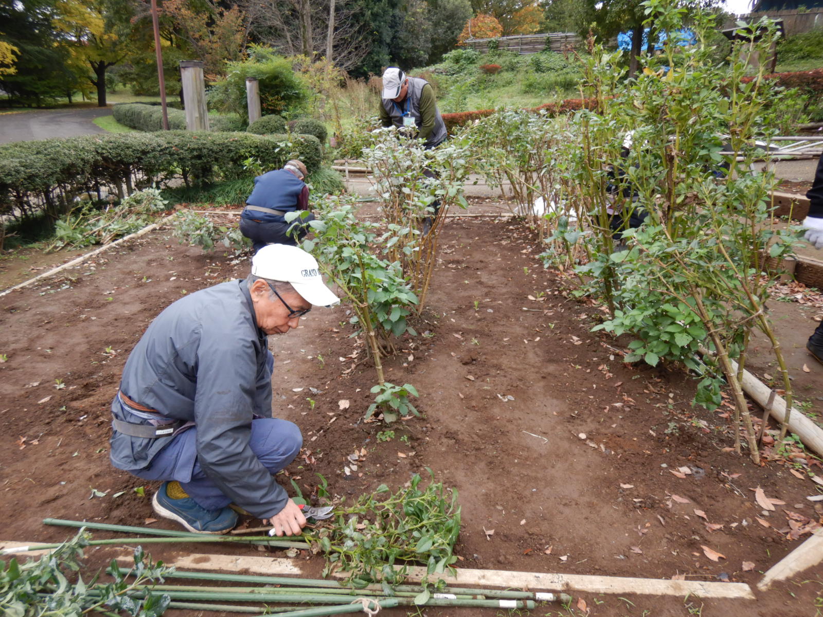 ダリアを刈り取り、球根保護のため藁敷きをしました。
