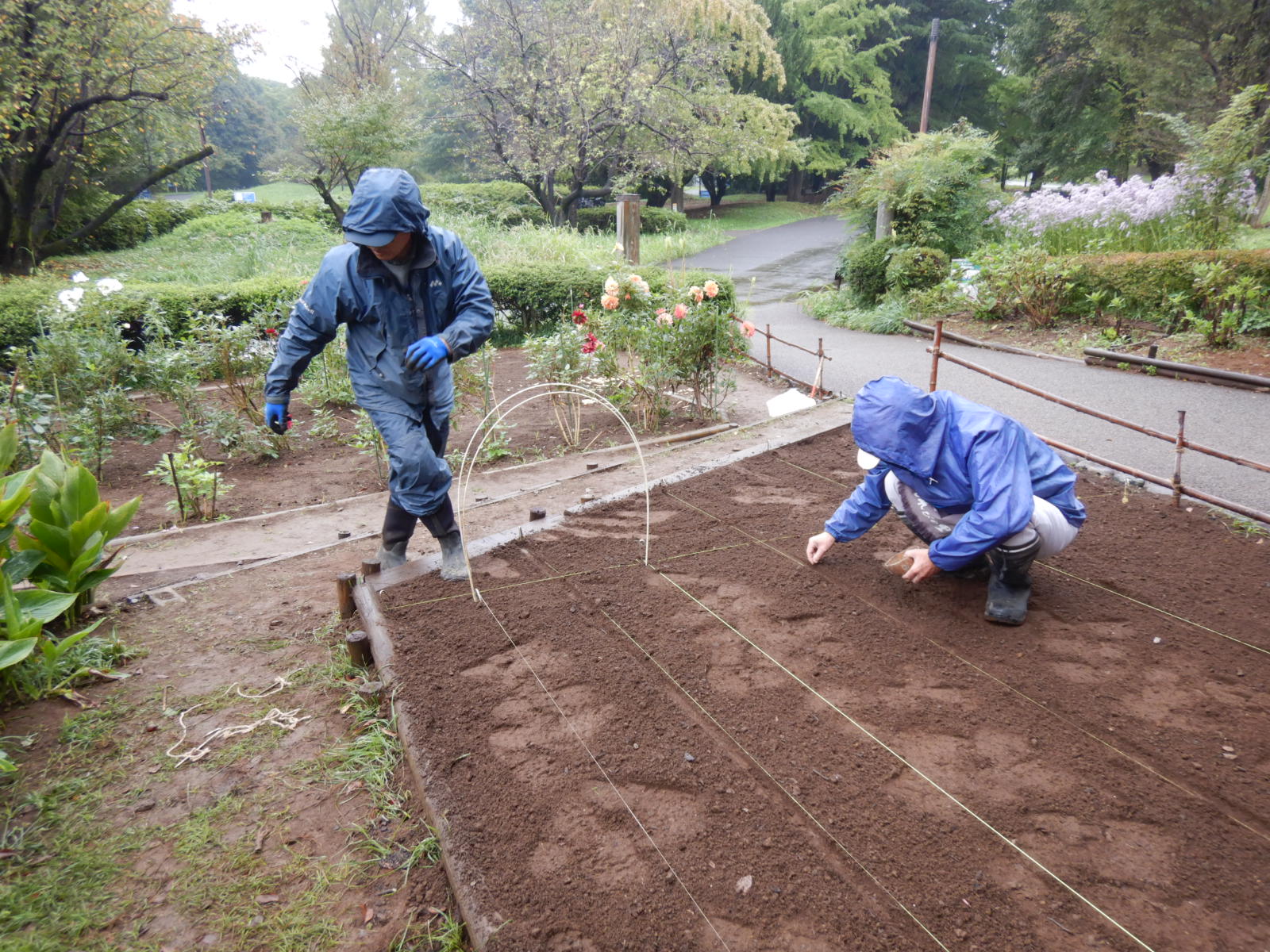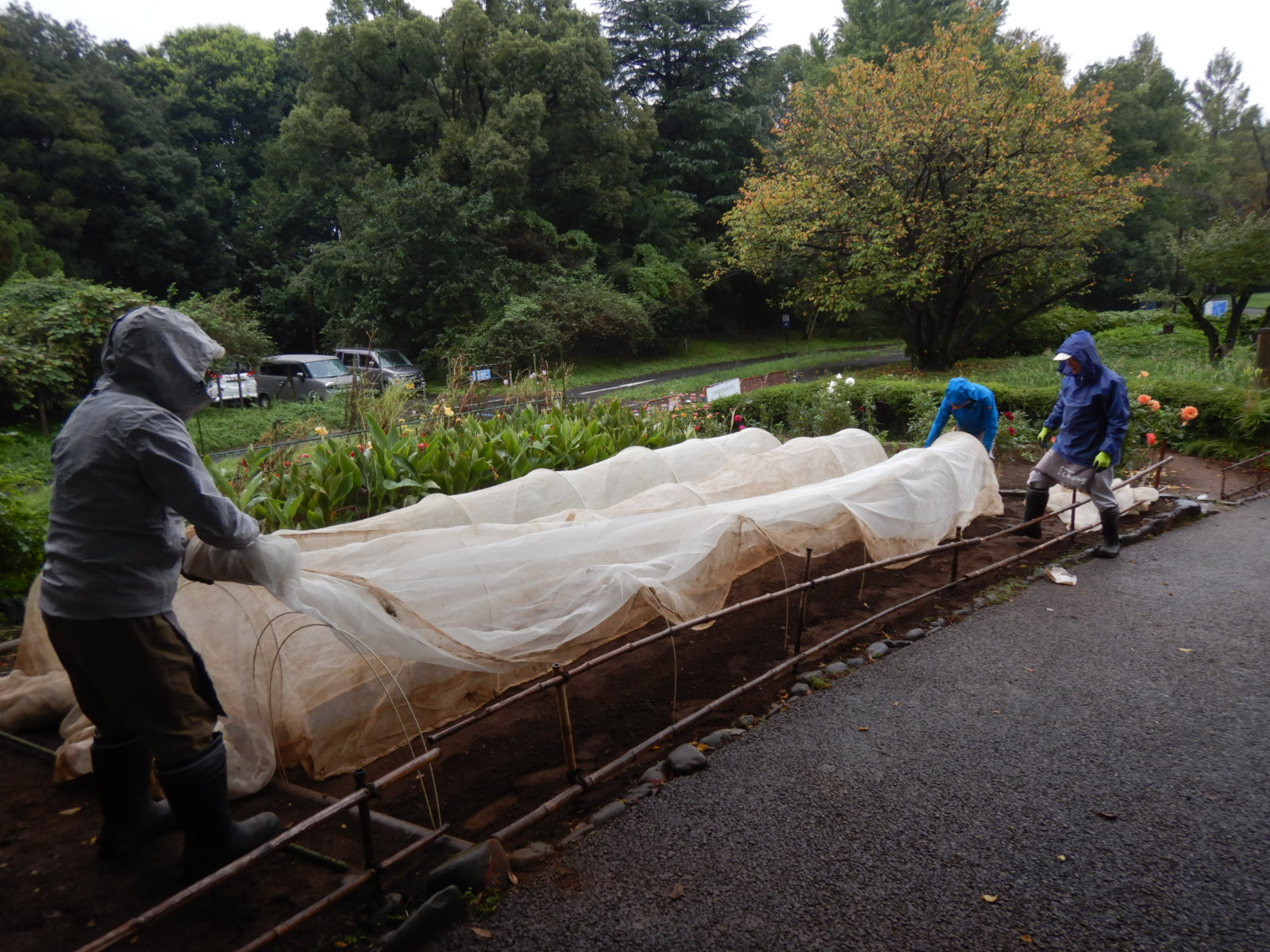 ナノハナの種蒔きをして、寒冷紗を掛けました。