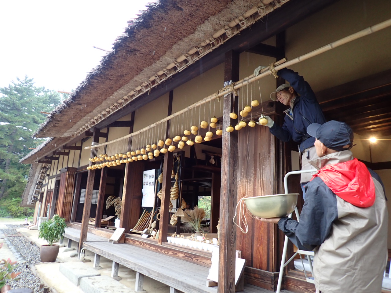 吊るし柿を作り、農家主屋に飾りました。
