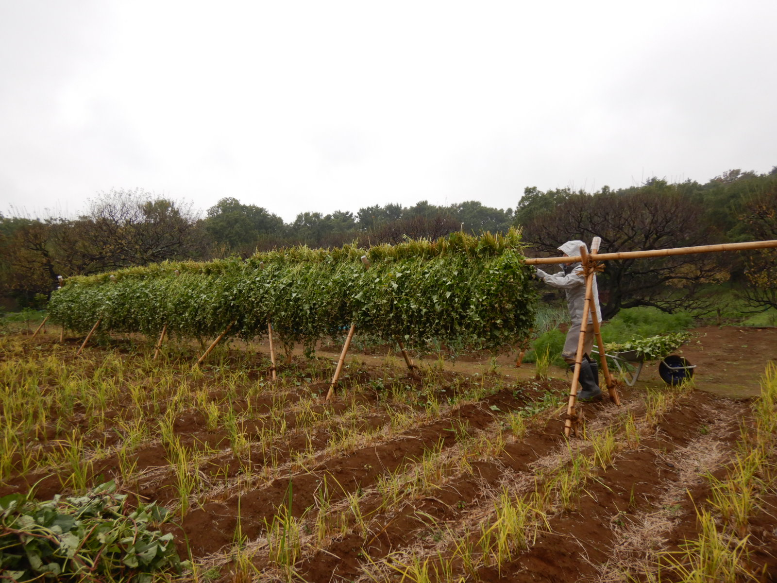 ソバを乾燥させる為、はざ掛けをしました。