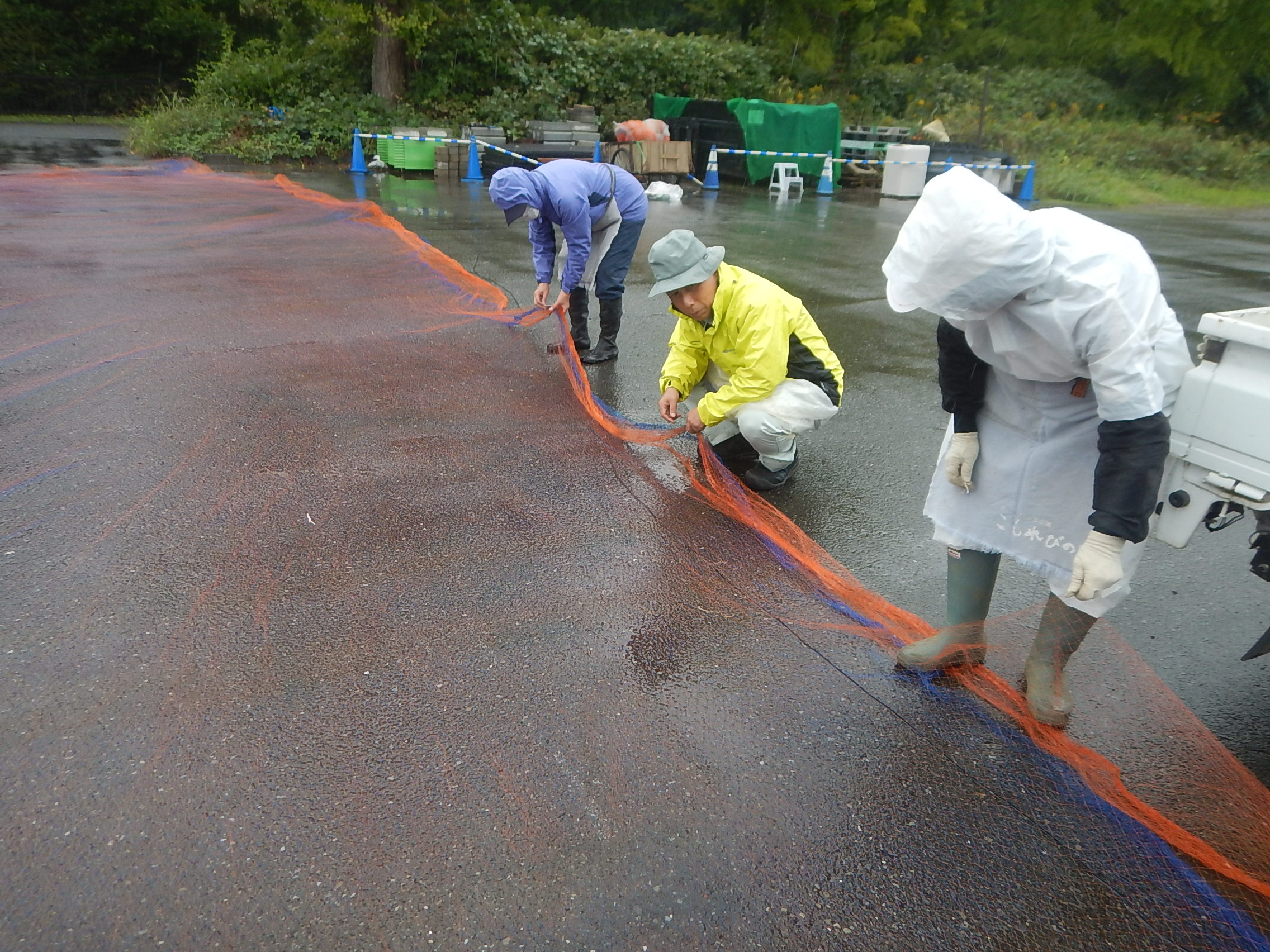 防鳥ネットの補修をしました。