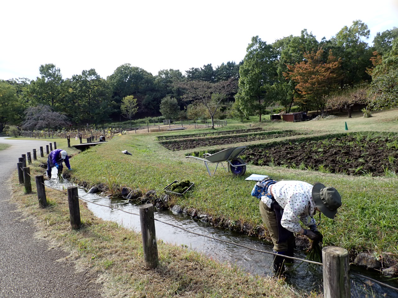 サイクリングロード側のヒャクニチソウを撤去し、除草しました。