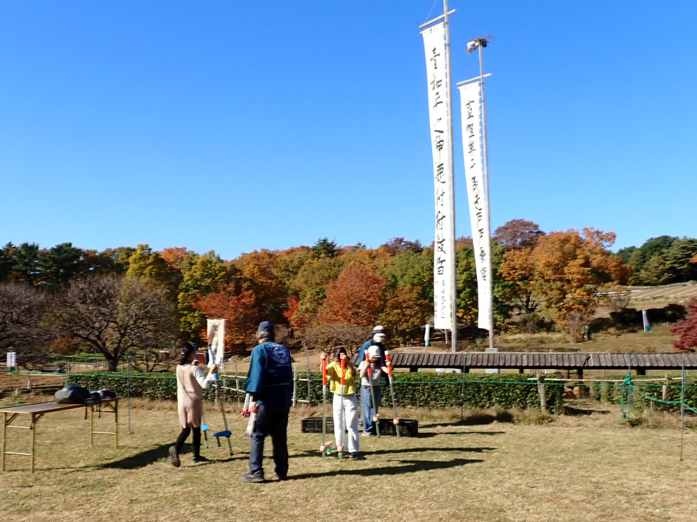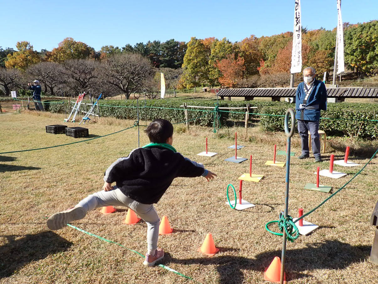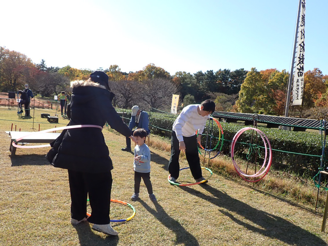 輪投げ、竹馬、ベーゴマ、フラフープなどが体験できる昔あそびエリアも賑わいました。