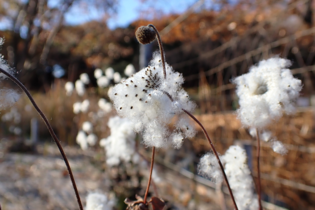 シュウメイギクの種を遠くまで飛ばすための綿毛がたくさん出てきました。