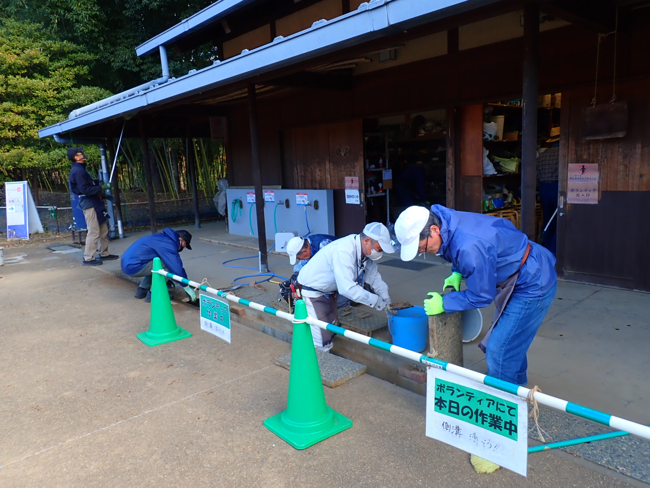 側溝の蓋を開けて、泥・落葉を取り除きました。