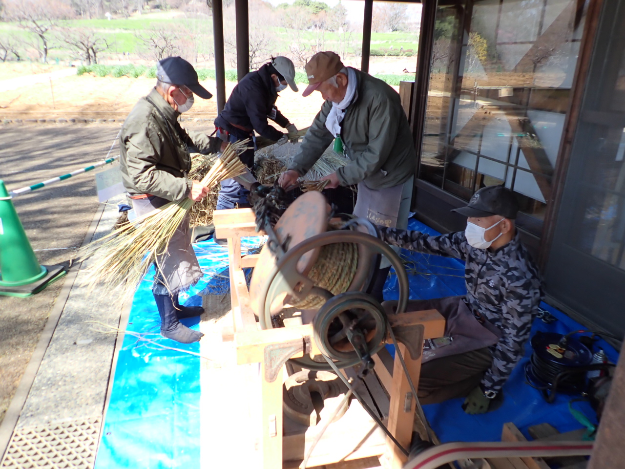 縄ない機で、縄を作りました。