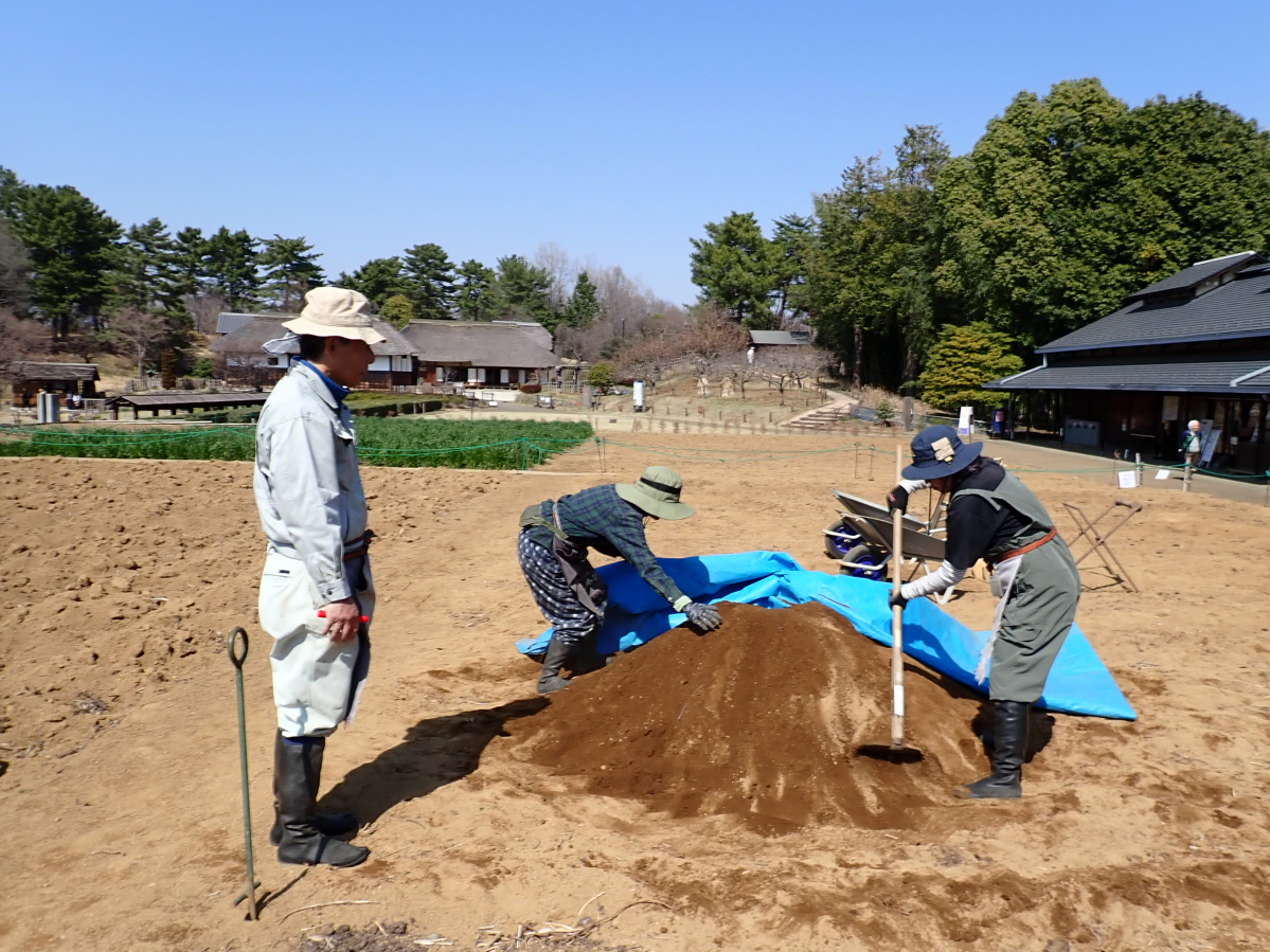 苗代(なわしろ)用の覆土(ふくど)作りと、苗代作りの準備をしました。